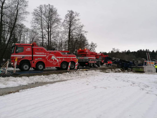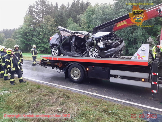 Da schweres Gerät zur Bergung anrücken musste, wurde die DEG25 zwischen Auerbach und Schaufling voll gesperrt. Mit Hilfe der 🚒 Freiwillige Feuerwehr Engolling und 🚒 Freiwillige Feuerwehr Schaufling wurde eine Umleitung eingerichtet.