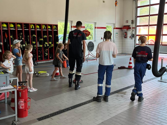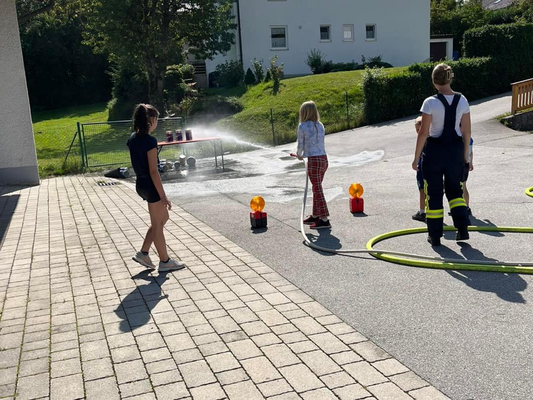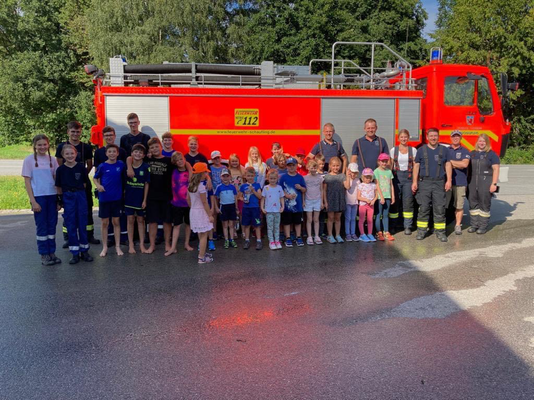 Heute Nachmittag besuchten uns die kleinsten Schauflinger, die Mutter-Kind-Gruppe. Wir zeigten unsere Fahrzeuge und zwei ausgerüstete Atemschutzträger standen zum Anfassen und Fotografieren bereit. Nach dem gemeinsamen D-Strahlrohrtraining drehten wir noch eine Runde mit dem HLF. Abschließend genossen die Kinder noch ihre Brotzeit vor den Feuerwehrautos.
