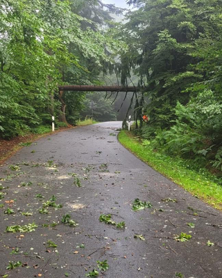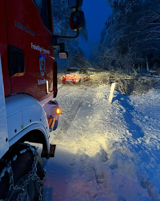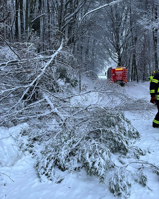 Um 7:03 Uhr wurden wir zu einem Baum über Fahrbahn alarmiert. Kurz danach bekamen wir über Funk die Meldung zu einem zweiten Einsatz. Hierbei handelte es sich um einen Baum auf Stromleitung.